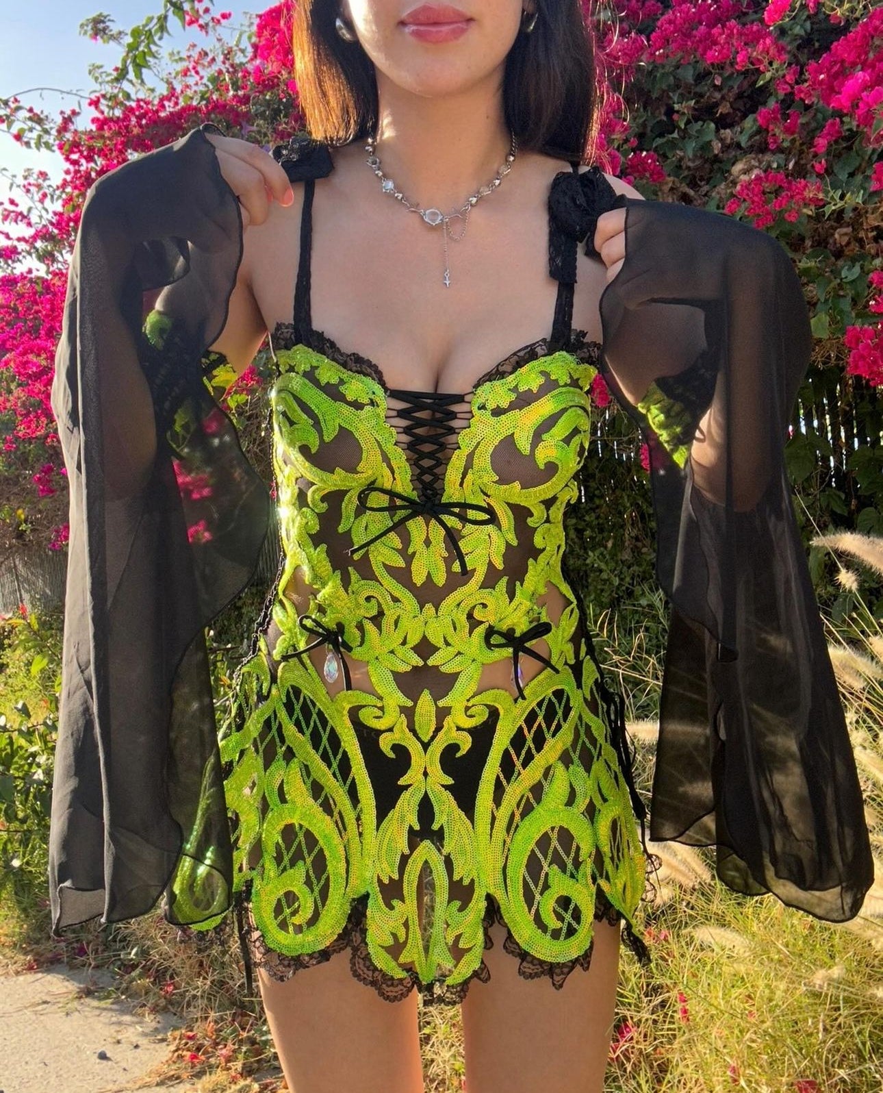 Dress with adjustable strings
